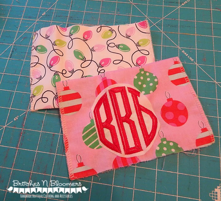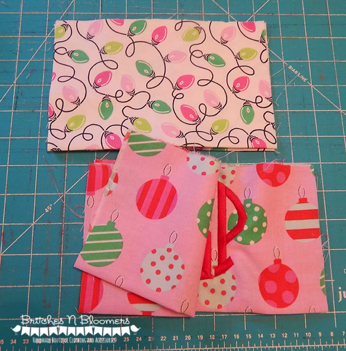 I made my cuffs so that I could Fold them over Wrong Sides Together, leaving the raw edges on the top and the fold on the bottom so I didn't have to hem the cuffs. So after folding my cuffs were 5" High, this left ample room for me to add some cute little monograms for my kiddos with my new toy!